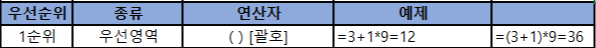 괄호 ( )로 묶인 영역이 우선적으로 계산된다.