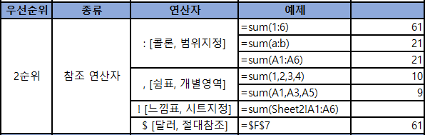 =sum(Sheet2!A1:A6) !기호를 사용하여 Sheet2의 A열1행부터 A열6행까지의 모든 숫자의 합을 구한다.