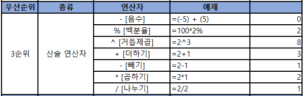 수식은 앞에 '=' 기호를 붙여서 수식을 지정해 줄 수 있다.