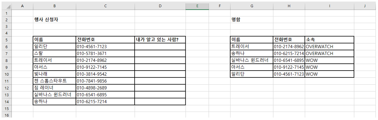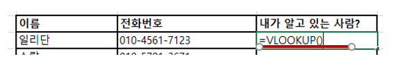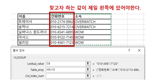 Unique한 값인 전화번호를 선택한다. 3) Table_array는 어디에서 값을 찾을 것인지 범위를 선택한다.