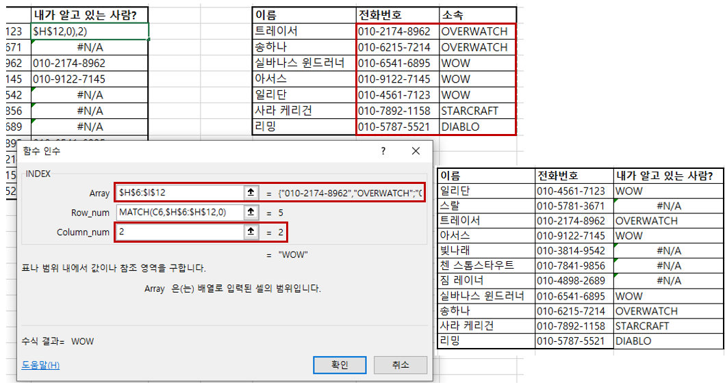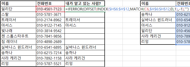 MATCH 함수와 INDEX 함수는 VLOOKUP 함수와 거의 동일한 기능을 수행한다.