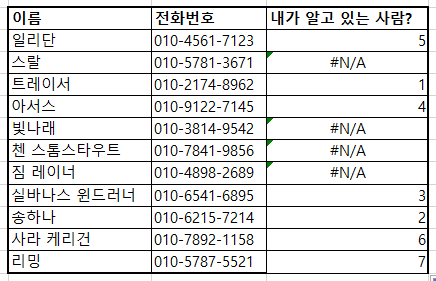 ※ 추가로 #N/A 가 안뜨게 하기 위해서 IFERROR함수를 사용할 수 있다.